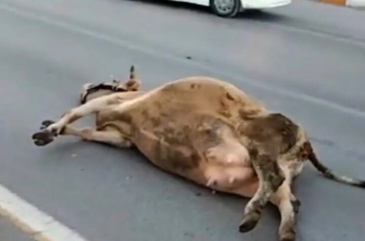 Muş-Bitlis kara yolunda otlayan ineğe çarpan arabada maddi hasar meydana gelirken, inek telef oldu....